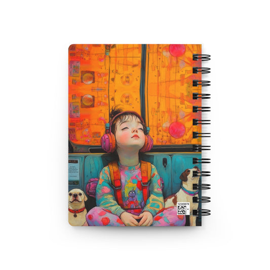 Whimsical Spiral Bound Journal with Playful Child and Pets Design